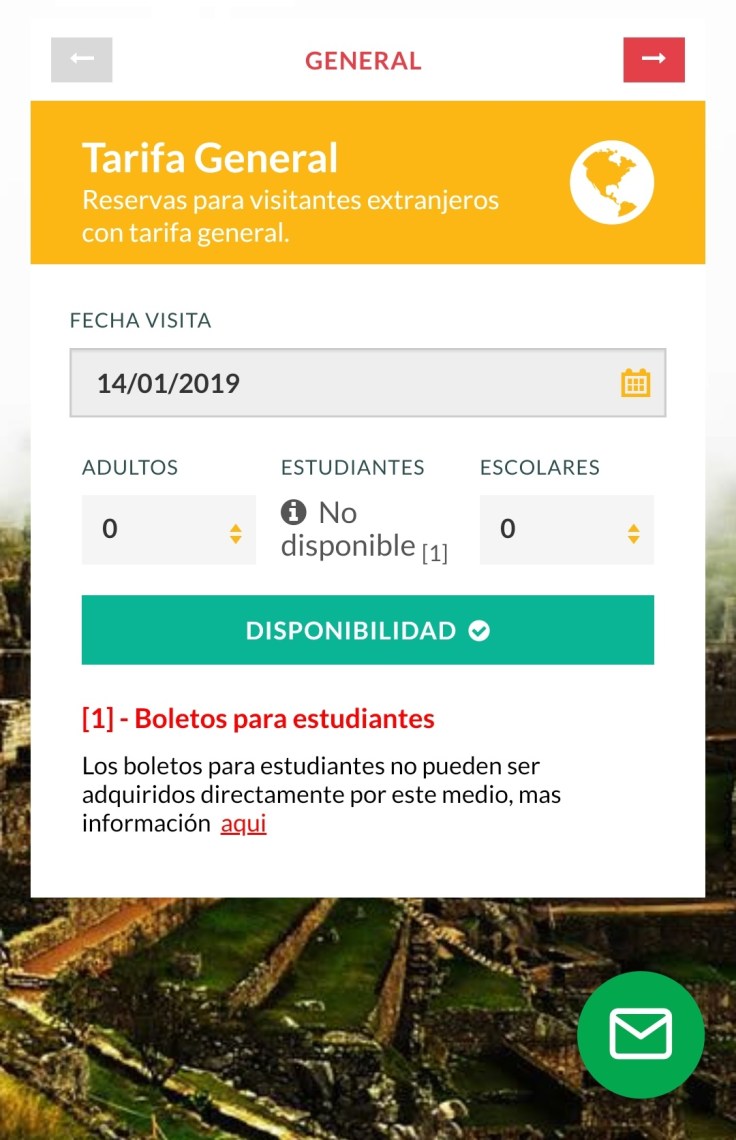 Na página inicial, você vai escolher a data que deseja visitar o Machu Picchu e o número de ingressos.