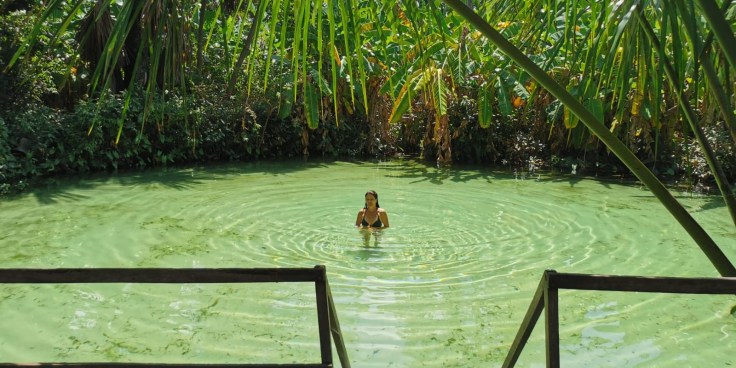 No segundo dia, saímos às 7h30 para o nosso primeiro dia de fervedouros. O tempo parecia bem instável, então decidimos trocar a ordem. Por conta da chuva, o Fervedouro do Ceiça estava escuro, mas mesmo assim foi o mais quentinho da viagem. Confesso que bateu um medinho de nunca ver um fervedouro azul, mas estava bem errada.